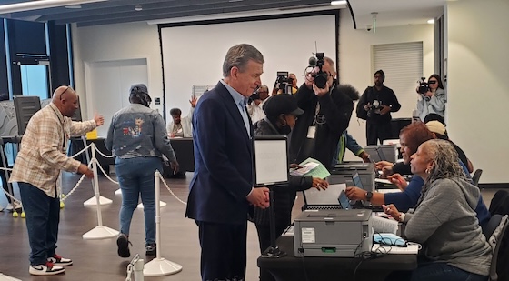 RALEIGH – Former Democratic Governor and U.S. Senate candidate Roy Cooper smiled broadly and exchanged pleasantries with poll workers at Chavis Community Center Thursday as he cast his ballot on the first day of early in-person voting in the 2026 primary.